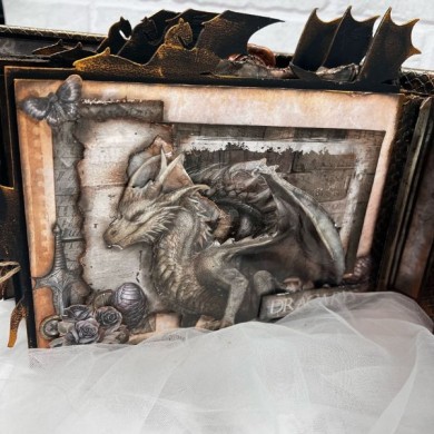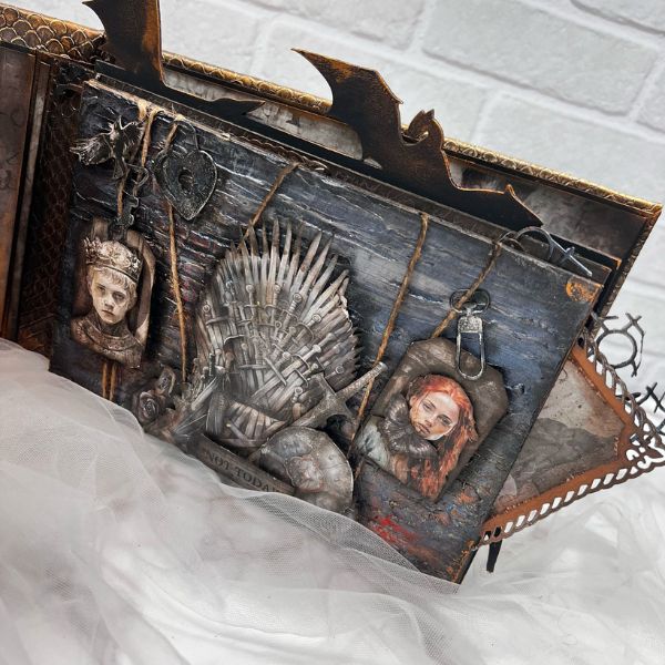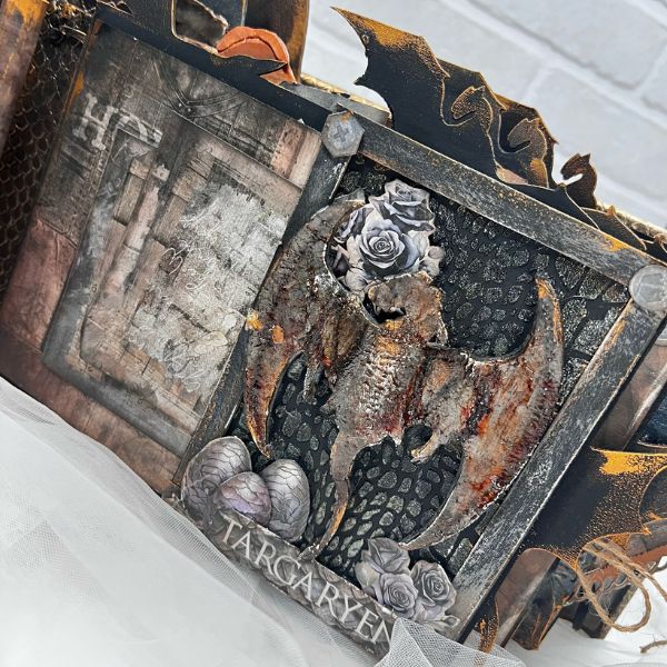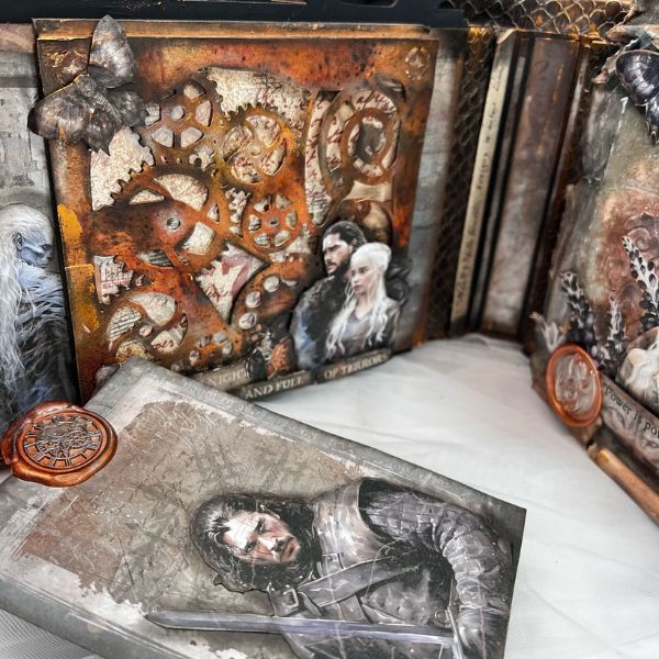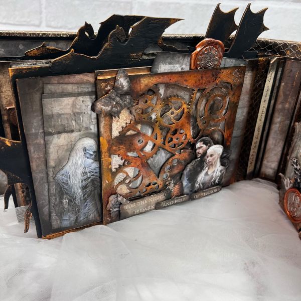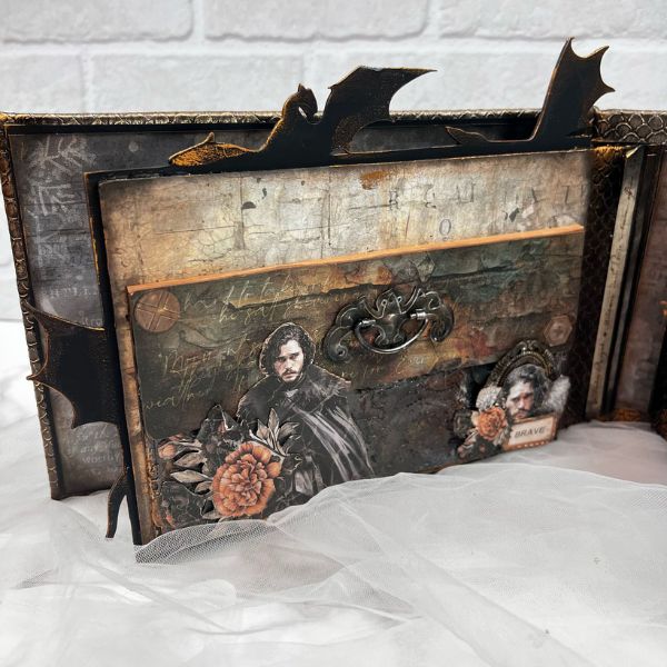 This project was created by our friend and Design Team member @naiarasm24. She made this beautiful scrapbook album using mixed media techniques with our Winter is Coming, Mother of Dragons, and Walkers collections. You can see a wide variety of projects that you'll love on her Instagram, YouTube channel, and social media. | BellaLuna Crafts Collections