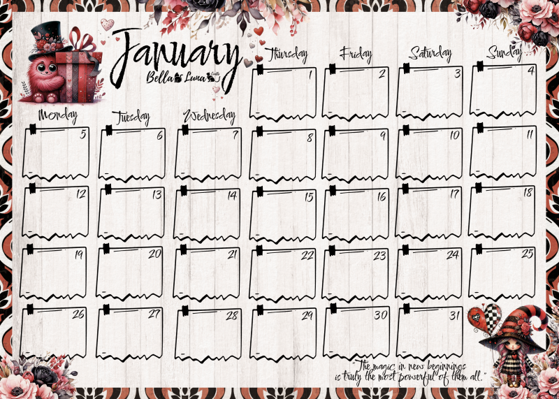 • Contenido: 1 calendario completo del 2026 en Ingles